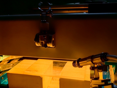 利用線型聚焦加熱器的高光強(qiáng)密度,低能耗,穿透力強(qiáng),控制簡(jiǎn)單等特點(diǎn),通過上方布置加熱器,可快速將碳纖維線加熱到所需溫度。